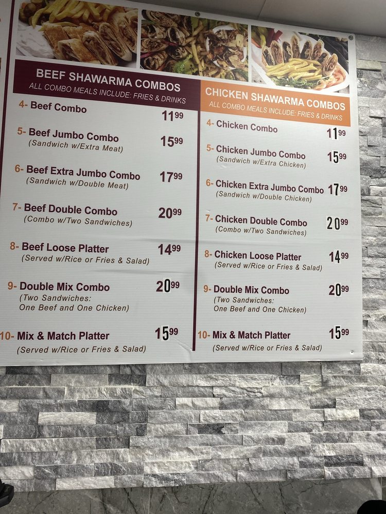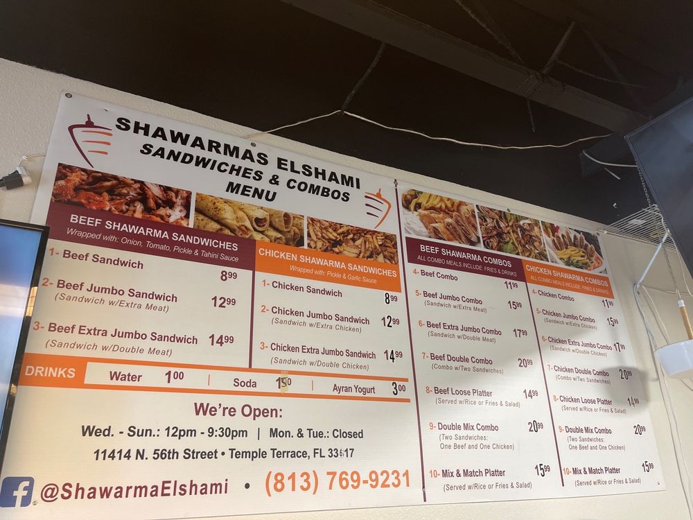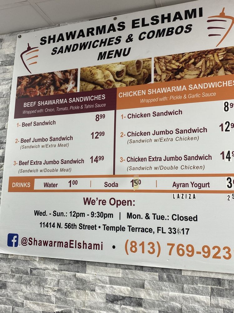 Introducing Shawarma Elshami, a classy Greek-Middle Eastern-Kebab restaurant located in Temple Terrace, FL. Their menu offers a variety of options including Chicken and Beef Shawarma sandwiches, jumbo sizes, combos with fries and soda, and even a Double Mix option. Customers rave about the friendly service, cleanliness, and delicious food. Mike A. highly recommends Shawarma Elshami as his favorite spot in Tampa, while Barbara G. describes it as the best shawarma in the USA with great quality meat. Alan W. praises the marinated, quality meat and excellent flavors of the chicken and beef shawarma. Boon C. compares the authentic taste to shawarma from Jordan. Overall, Shawarma Elshami is a must-visit for those craving authentic and flavorful Middle Eastern cuisine.